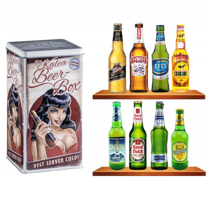BOX BOITE METAL 'BLACK HAIR' *8 BIERES DU MONDE